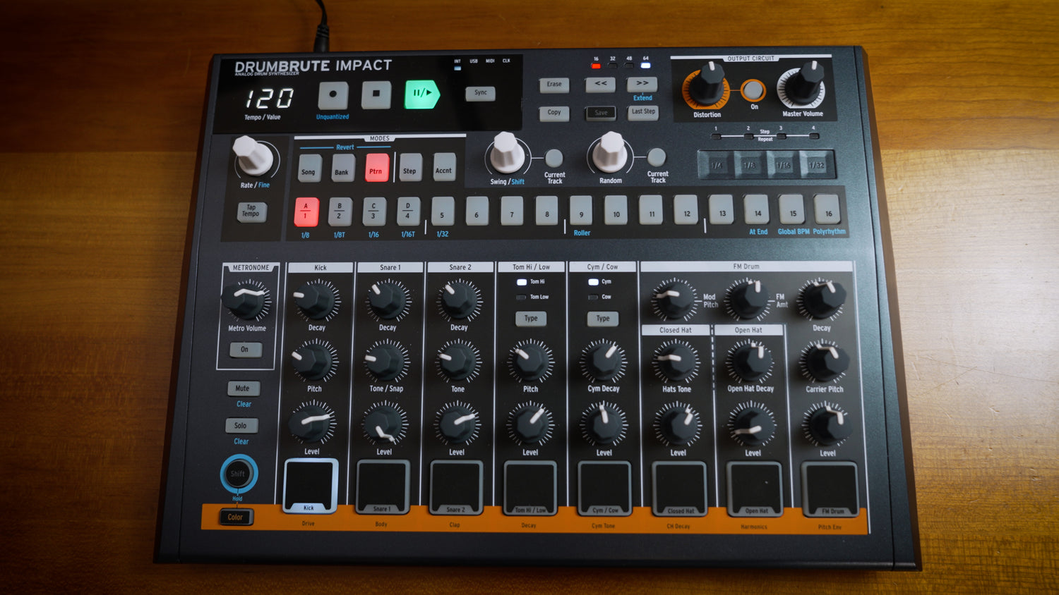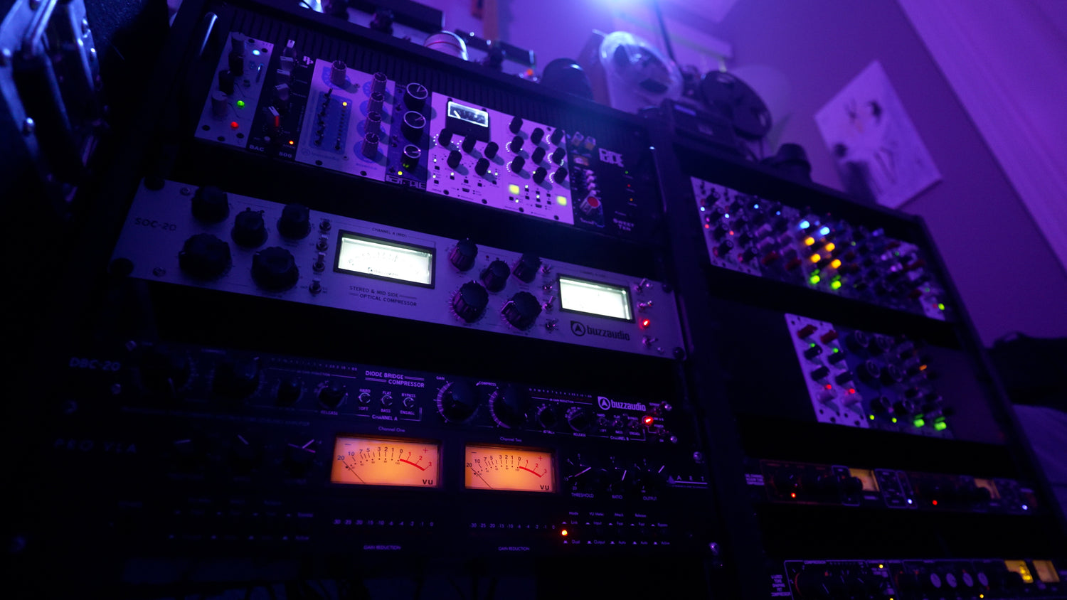 The drums were an Arturia Drum Brute Impact that got extra grit from a Purple Audio Action FET compressor. Followed into a Drawmer 1978 or a bit more hair. Followed into an A Designs EM-PEQ shelving EQ to taste.